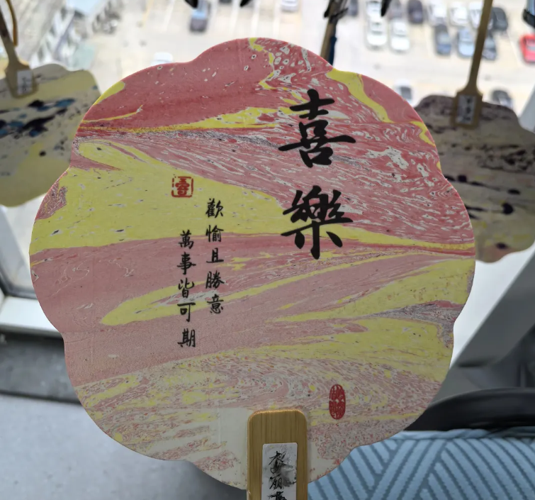 最惊喜的是每个人的扇子都长不一样!有小姐姐画了江南烟雨,还有同学搞起了赛博朋克风~最后摆在一起简直像个小型艺术展!